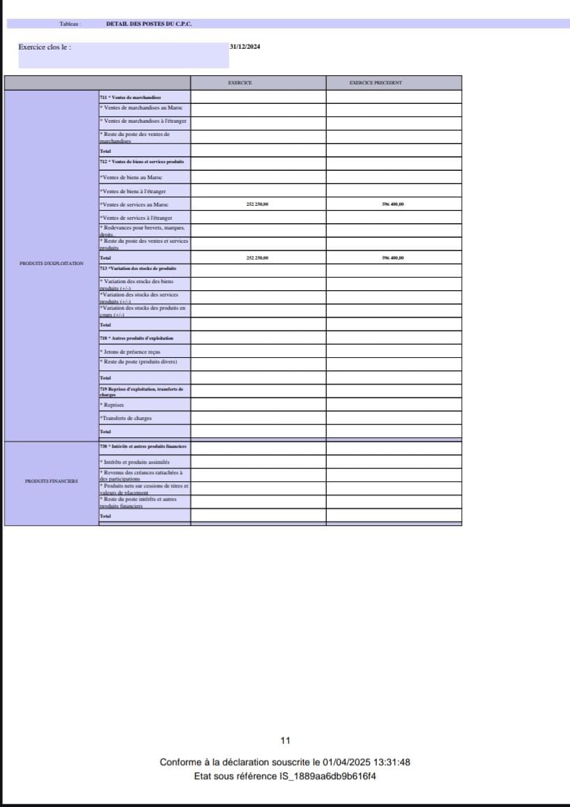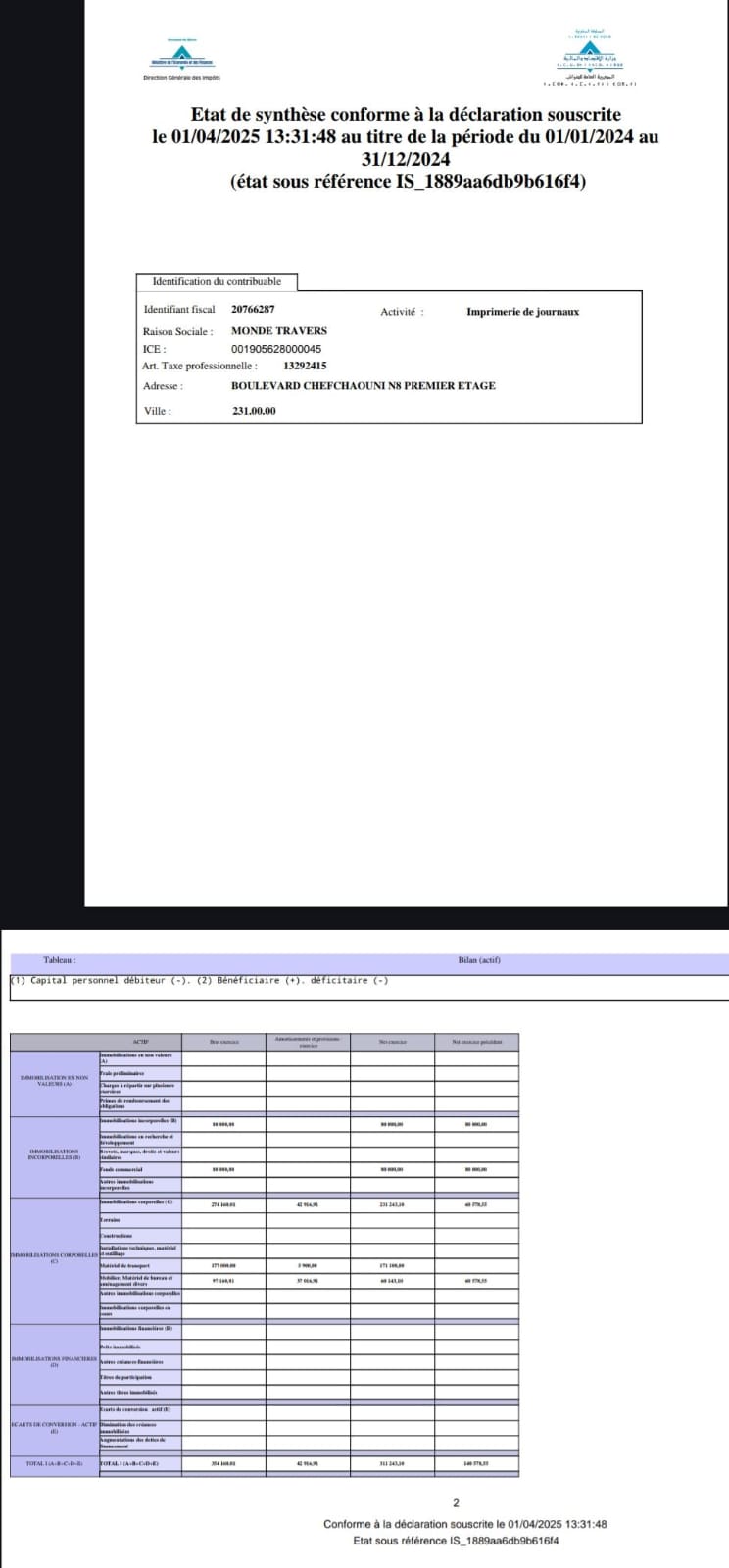 الجزء الأساسي من المصادقة الإلكترونية للبيان الإجمالي الختامي للقوائم التركيبية التحليليلة لسنة 2024 الخاص بشركة MONDE TRAVERS